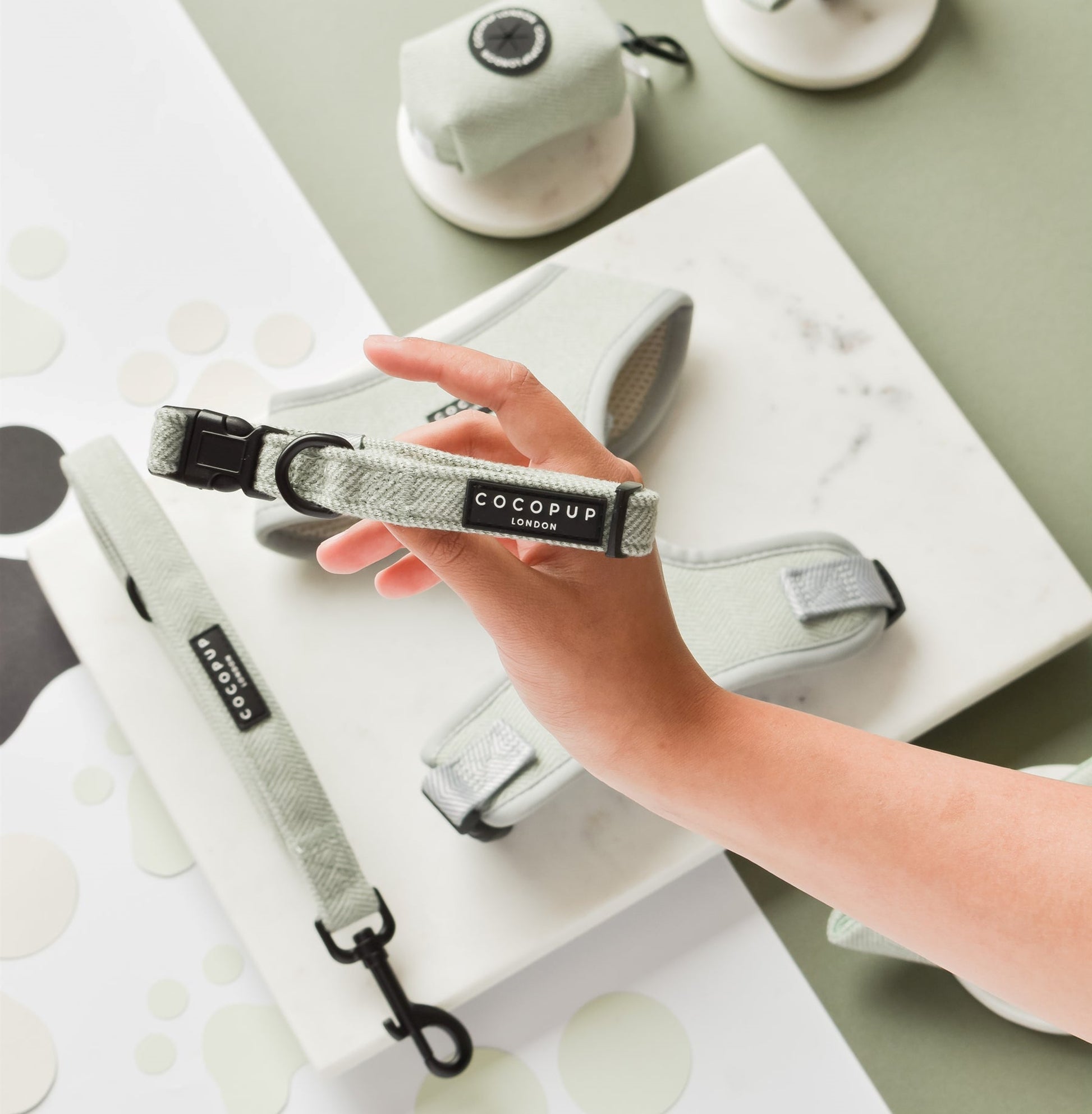 Cocopup Sage Green Tweed Dog Collar