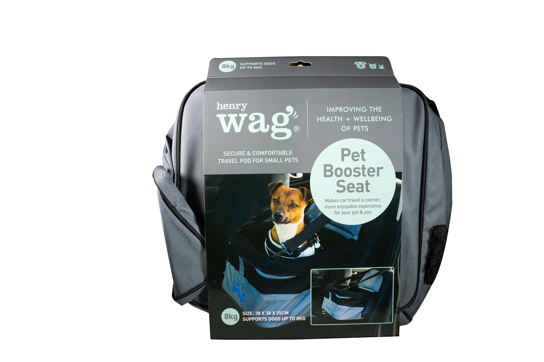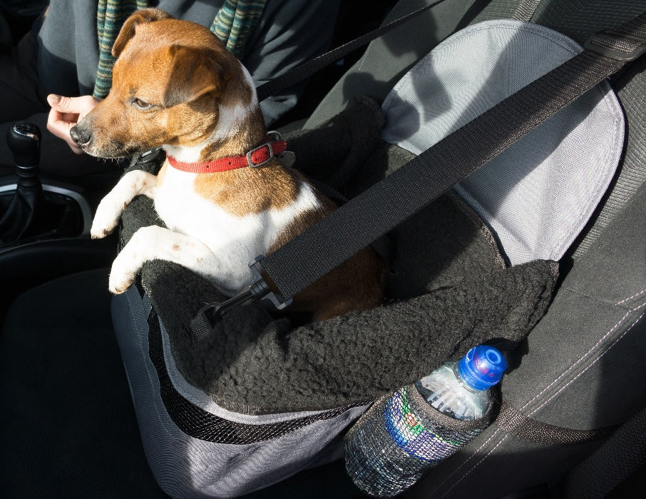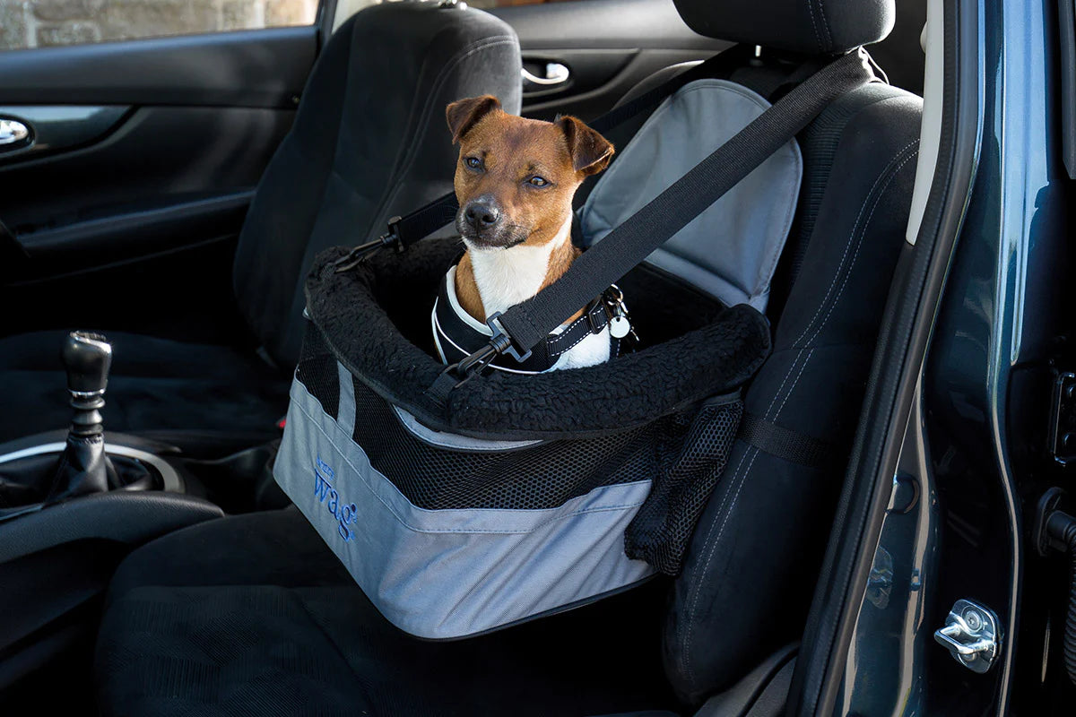The Henry Wag Car Booster Seat offers a secure and comfortable ride for smaller pups, up to 8kg, by attaching to their harness via a tether clip.
