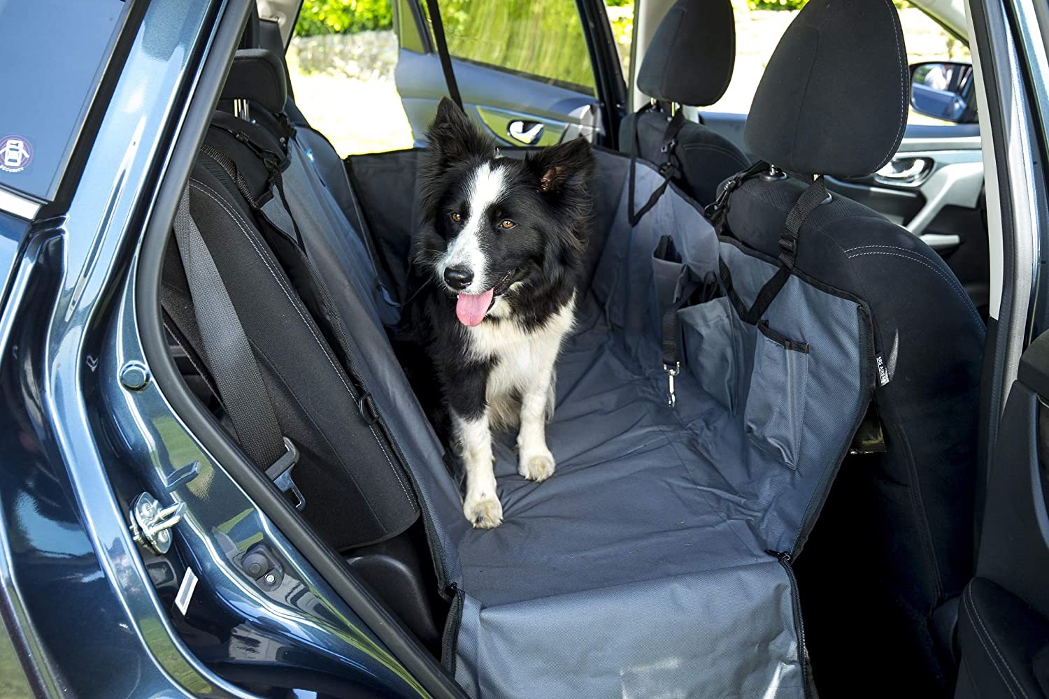 The Henry Wag Pet Car Hammock safeguards your pup on the back seat of your vehicle, preventing them from falling into the foot well.